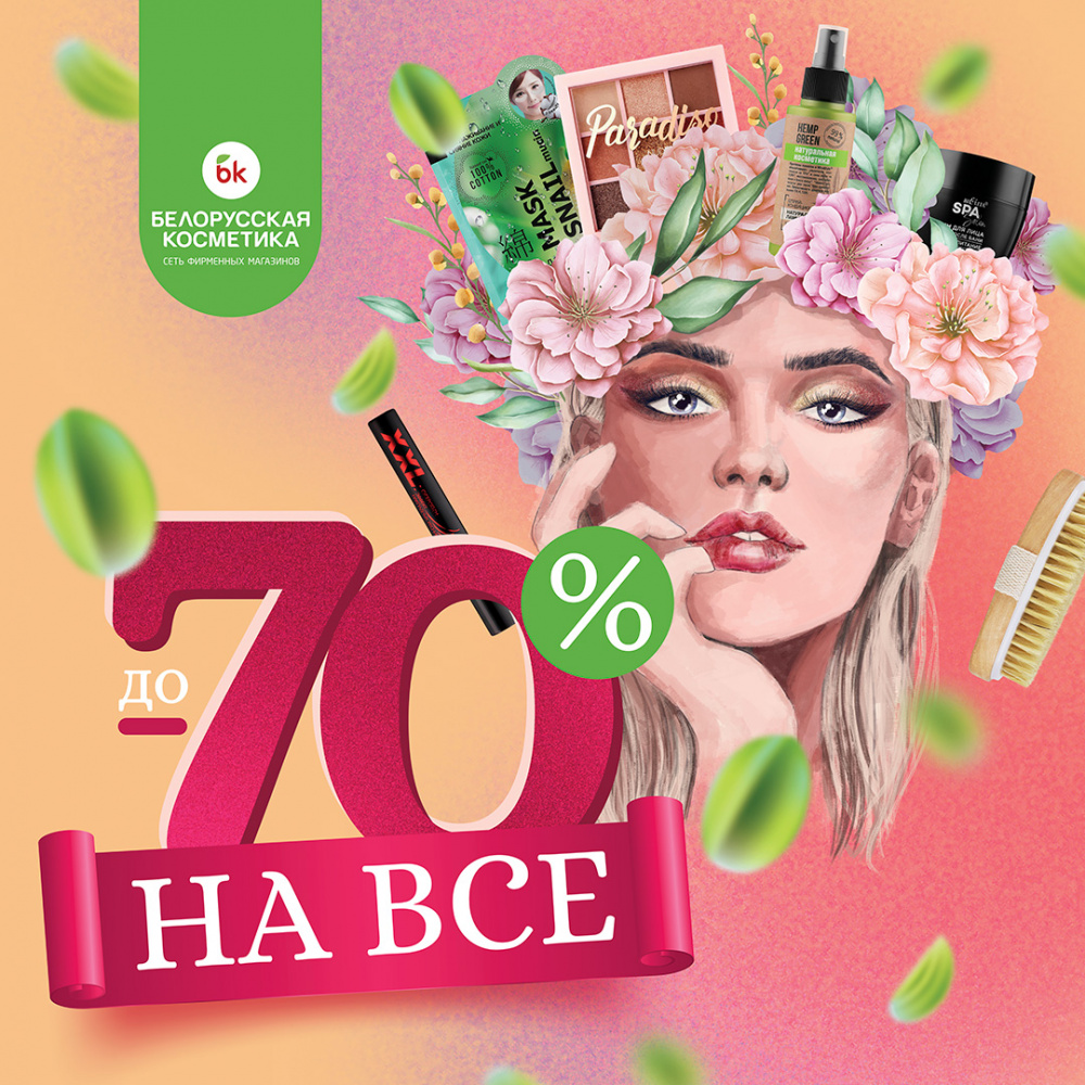 Ведь у нас невероятные новости — с 24.02.2022 по 21.03.2022 действуют скидки до 70% на любимые товары во всех категориях! 💥 Декоративная косметика и уходовые средства белорусских брендов,