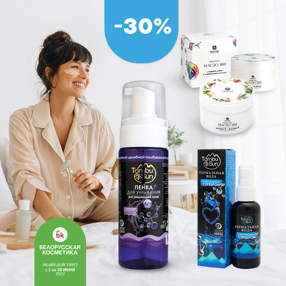 «Пенка для умывания TambuSun с гиалуроновой кислотой для увядающей кожи, Бизорюк», «Гидролат TambuSun гиалуроновый Яркий Василек, Бизорюк», «Термальная вода TambuSun с коллоидным серебром, Бизорюк» — это прекрасные средства для поддержания молодости и красоты!