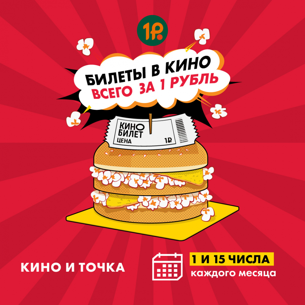 КАРО запускает киномарафон КИНО И ТОЧКА: 1 и 15 числа каждого месяца в каждом кинотеатре КАРО гостей будут ждать три специальных сеанса, билеты на которые можно приобрести за 1 рубль!
