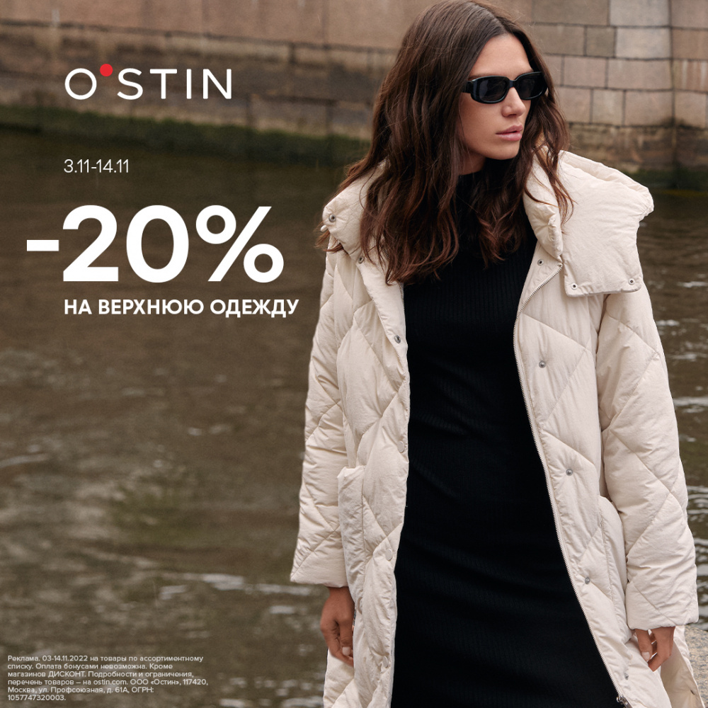 С 3 по 14 ноября в O'STIN -20% на верхнюю одежду