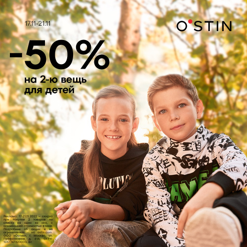 Выбирайте любую вещь из детской коллекции и получите скидку 50% на вторую