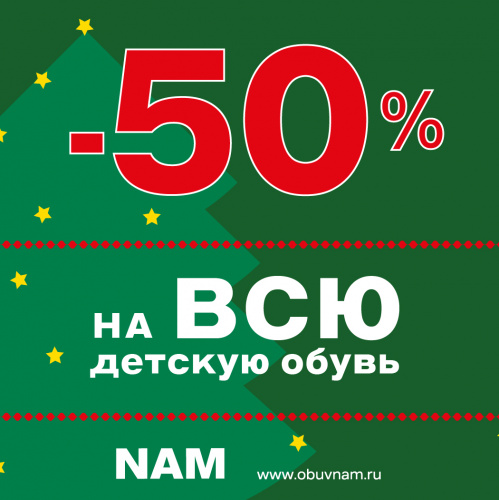 В магазинах обуви NAM -50% на всю детскую обувь. Спешите к NAM за обувью для ваших деток, широкий ассортимент и приятные цены ждут вас